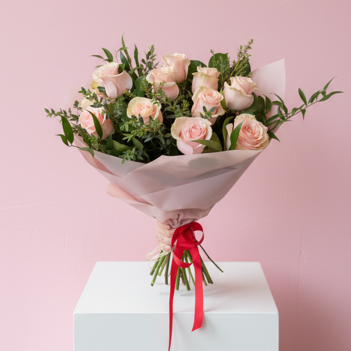 One dozen imported Ecuadorian Roses, hand-tied with lush foliage.