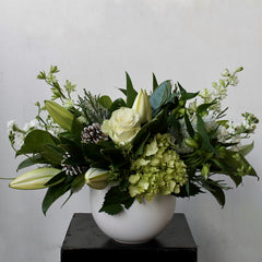 THE PERFECT ARRANGEMENT FOR THEIR COFFEE OR DINING TABLE. CLASSIC WHITE AND GREEN WILL COORDINATE WITH ANY DÉCOR. ONE OF OUR BESTSELLERS!